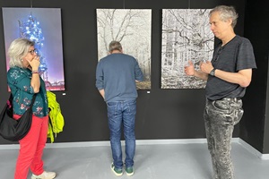 Auf ihrer neuen Atelieretage im City-Center präsentierten Harald Mante und Eva Witter-Mante mit Cora den Adel ihre Kunst. Witzig und erstaunlich ausdrucksstark die Skulpturen von Eva Witter-Mante aus Kabelbindern, bestürzend die Collage eines Flüchtlingstrecks von Cora den Adel und eindrucksvoll die Fotografien von Harald Mante – auch in Zusammenarbeit mit seiner Frau. Sie fotografierten vor einigen Jahren unter dem Titel „Atempause“ in den Räumen der Evangelischen Kunstakademie Trier außerhalb des Lehrbetriebs und entdeckten Kuriositäten und humorvolle Stillleben .