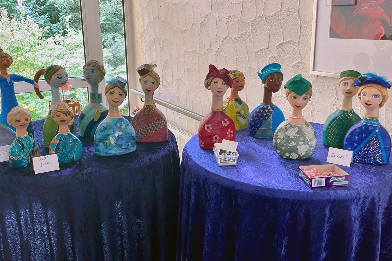 Dazu die große Kunst von Jessica Maria Toliver, die sich dem Thema Vergänglichkeit auch in Form von gestalteten Urnen genähert hat, Malerei von Uschi Vielhauer, Fotografien von Bernd Müller mit Gastkünstler Kay Nentwig, das kleine Kunstzentrum am Westendamm, wo Eva Hammoudo ihre lebens- und farbenfrohe Kunst zusammen mit den Seelenwächtern von Birgit Steinfort zeigte und und und.